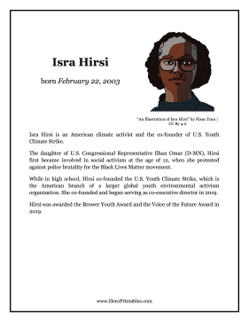 Learn about young activists with this printable her biography on Isra Hirsi, civil rights and environmental activist.